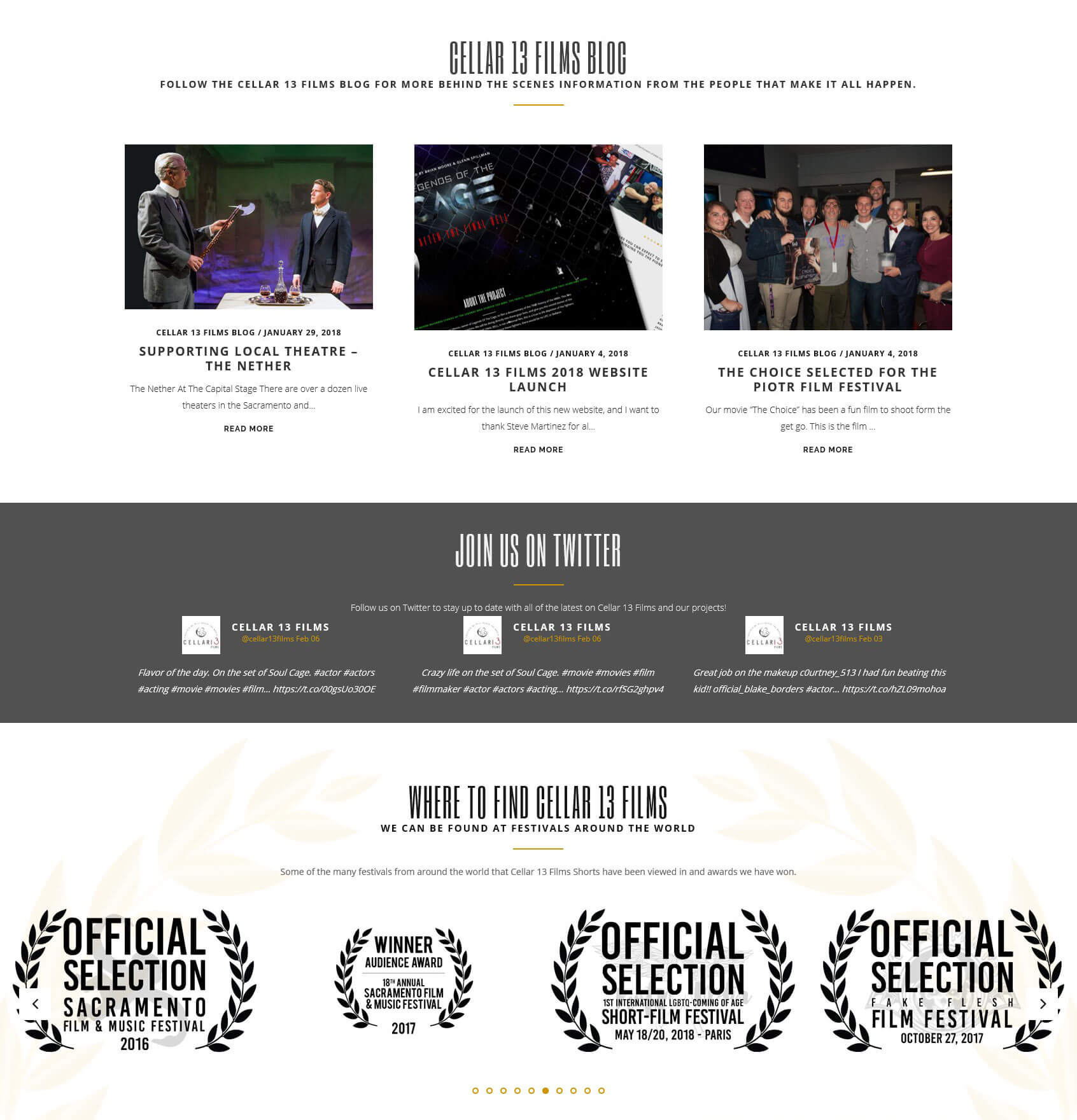 Built and maintain the website for our company Cellar 13 Films based on a purchased theme. We are always needing to modify the site to meet our needs as new projects get added.